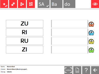 Nächste Übung wählen. Sterne-Anzahl festlegen. Übung löschen? Oder Lernplan erzeugen.